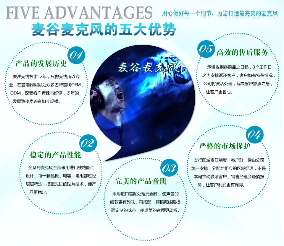 公司簡介  廣州谷馳電子科技有限公司始于2012年。公司致力于KTV娛樂演出無線麥克風、會議系統產品的研發與銷售。是國內知名的電聲產品制造商,音頻解決方案提供商。在國內外建立了龐大的銷售網路,產品深得廣大客戶的青睞與好評。旗下品牌MICGRAIN(
